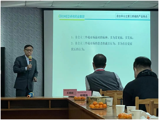 我集團公司副總經(jīng)理詹鵬盛先生代表卓和藥業(yè)集團對中睿醫(yī)藥商學(xué)院華東班學(xué)員的到來表示熱烈歡迎,并為參訪學(xué)員分享我公司第三終端市場開發(fā)經(jīng)驗,拓寬第三終端市場營銷新思維。幫助學(xué)員把學(xué)習(xí)交流成果轉(zhuǎn)到工作實踐中去。